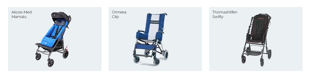Strollers in the APEX Mobility range that suit users with low to moderate support needs include the Akces-Med Mamalu, Ormesa Clip, Thomashilfen Swifty, and the Eurovema Pixi (Pixi is no longer available).
