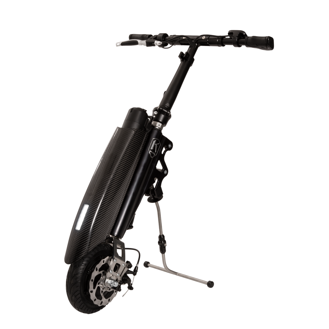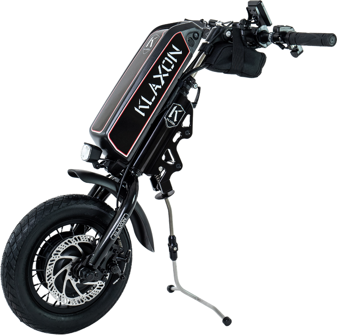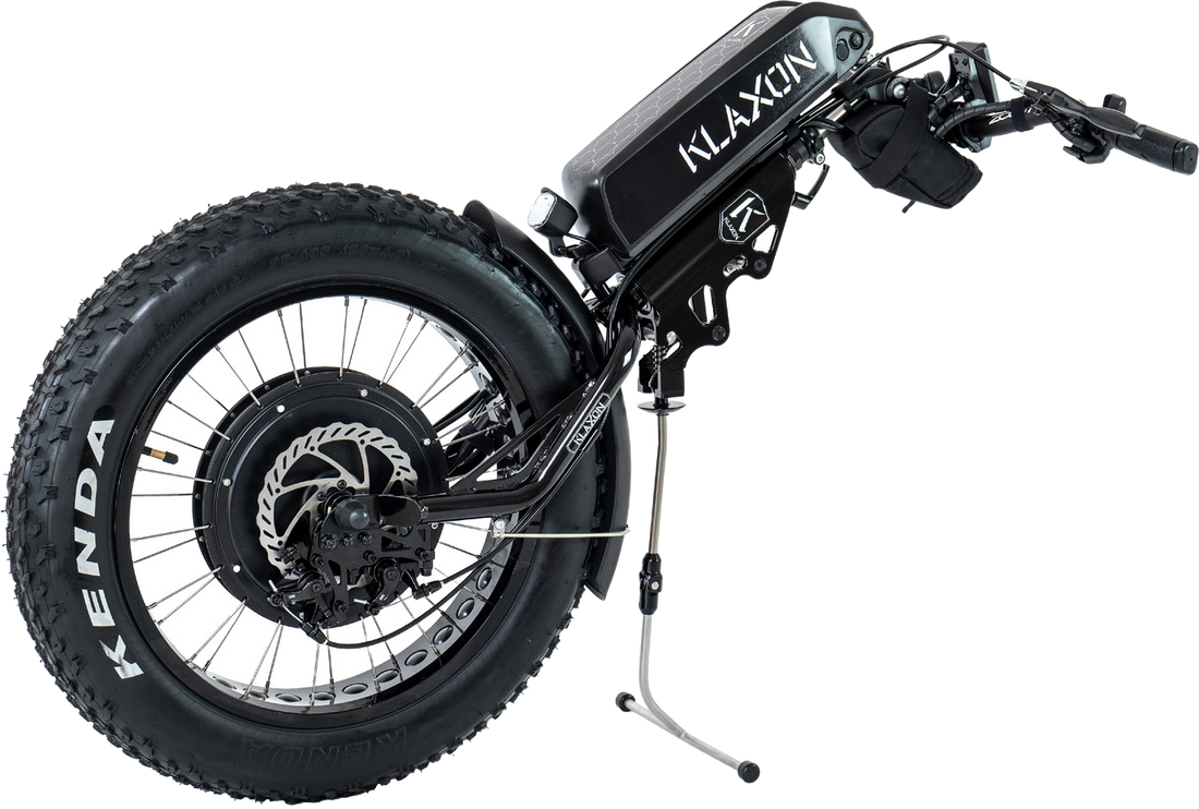 The innovative Klaxon linking system allows the device to connect in seconds, while the universal hub ensures compatibility with both rigid and folding wheelchair frames.
