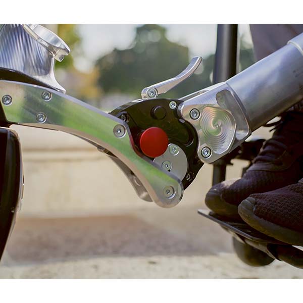 A game-changer, the Klaxon Twist, is an innovative power-assist device for manual wheelchairs. Due to its unique, compact design, the Twist can be mounted out the front of the wheelchair, or underneath, to give drive from the rear. This new member of the Klaxon family has been developed by a team of equipment users and industrial designers, encasing features such as lighting and powered-braking. The Twist is agile and reliable on different types of terrain, uphill and downhill, on gravel, on rough and uneven ground. Fast and manoeuvrable, it is made of high quality materials and with innovative technologies. The special foldable handlebar offers even more riding comfort and more speed. It connects to the Twist with a plug-in system. With Twist you can check your settings and usage statistics directly on the display of your Smartphone. You can easily program speed and braking parameters or view the battery consumption.