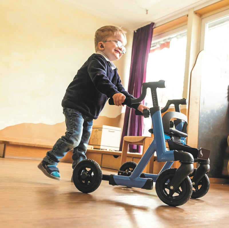 Marcy helps assist a child with their very first attempts to walk safely. It provides support to help maintain balance and simultaneously train the torso musculature. The wheelbase can be adapted to suit individual requirements and its high manoeuvrable. The long base provides security and support with direction locks to assist walking in a straight line.