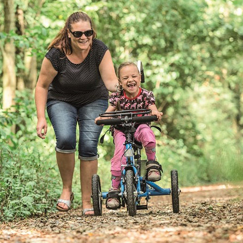 Momo tricycle allows a child to discover the world independently. The Momo trike has been designed to provide both therapeutic benefits and riding pleasure. It has a compact design with a low centre of gravity, ultra-low bar and wide frame which makes it easy for a child to get on and off the trike safely and independently. To optimise comfort and ease of pedalling, you can choose the standard rigid drive, a 7-speed gear hub version and the option of electrical support.